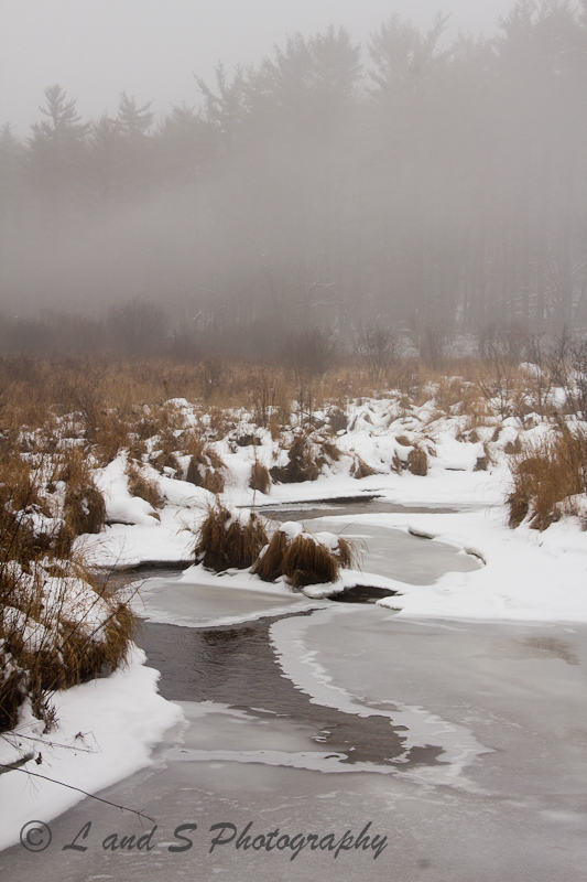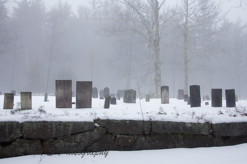 It was warm(47 degrees) the day I toured Sharon. The warm air combined with the cold snow made for a foggy day. Somehow, the fog made taking photographs at North Cemetery almost mandatory!