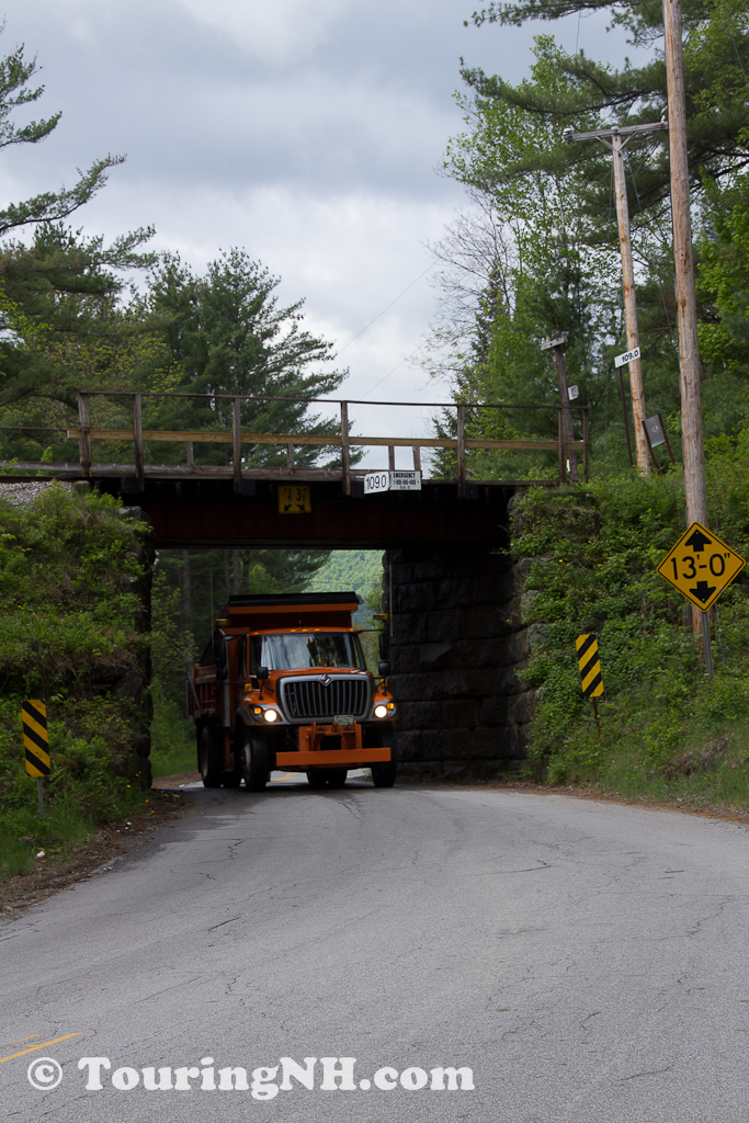 My husband was driving the motorhome when we came to this bridge. I got out and watched closely as he drove under it. Waldo is 12’6″ and the sign says that the clearance is 13′, but you never know for sure. This dump truck had a lot more clearance than Waldo did!