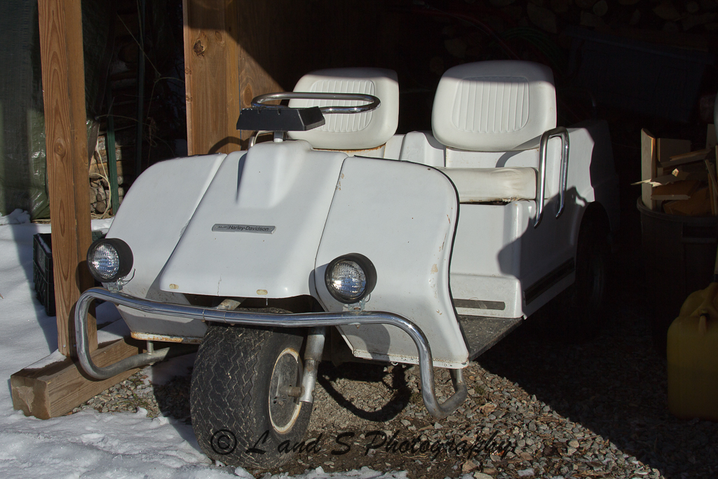 This 1950’s truck once belonged to an herbalist. Inside is a handmade chart for making tinctures and herbal remedies for whatever may ail you. Eric has done some restoration, but over all it is exactly the same as it ever was (and it still runs strong!) Eric was truly a fascinating person to talk with! Last year, he biked across the country to raise money for food banks. He wrote about it everyday on his Facebook page, Biking for Bread. It is quite a story of his travels. Daily journal entries can be found under the “notes” link. Another very cool item we saw was his Harley Davidson golf cart…