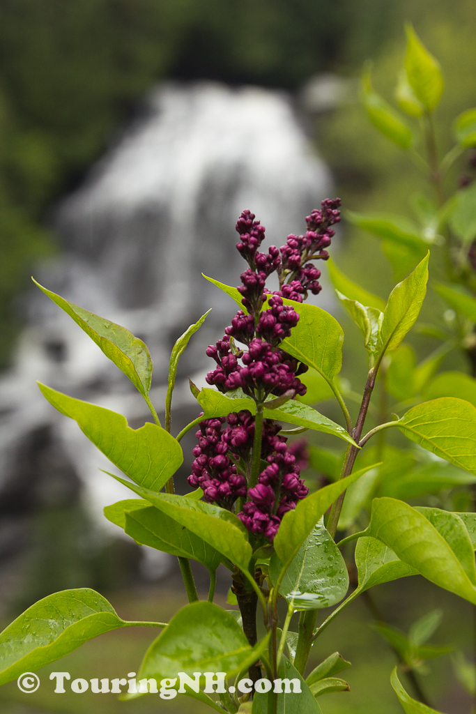 Colebrook – Lilacs in front of the falls.