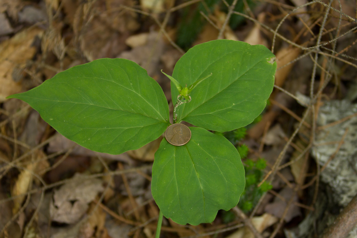 I started back down the trail and saw the leaves of a trillium plant, the flowers long gone. What amazed me was the size. I don’t know how old this plant was but the leaves were huge…