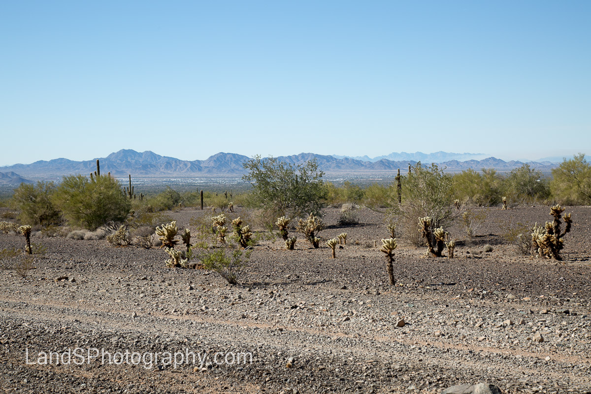 I knew we had gone up in elevation quite a bit and my GPS confirmed that. We were at 1106′ when we started and ended at 1674′. From that height, we could see all of Quartzsite and beyond…
