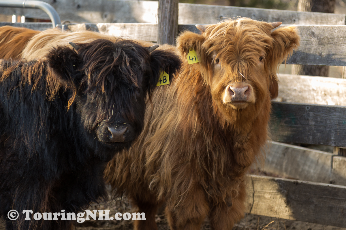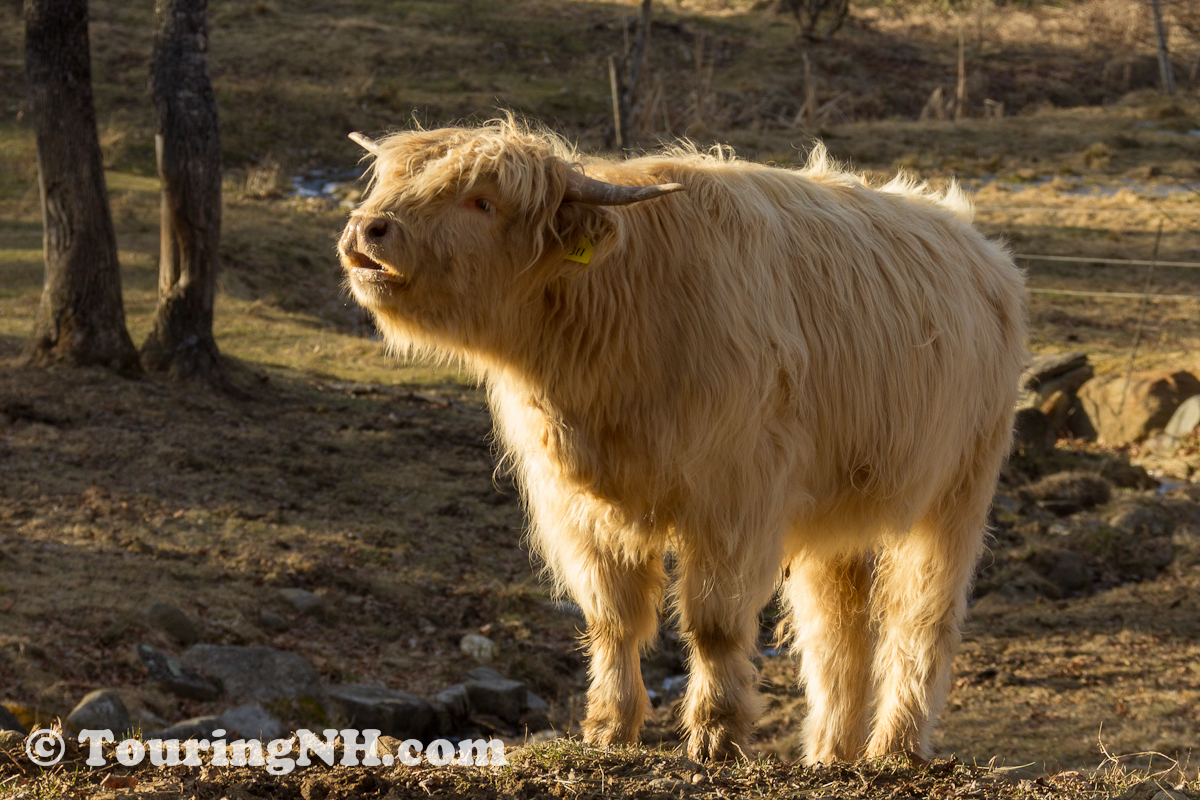 The days are getting warmer and I am back to touring NH. My second town of 2015 was Hopkinton. It’s a beautiful town with lots of rural charm. If you been reading my blog for a while, you probably know I have an affinity for Highland Cattle. Their long shaggy hair and curved horns always make me smile. We were nearly finished with our day in Hopkinton when we came across this wonderful farm. The farmer, complete with his faded overalls and hat, gave me the ok to visit with his cattle…