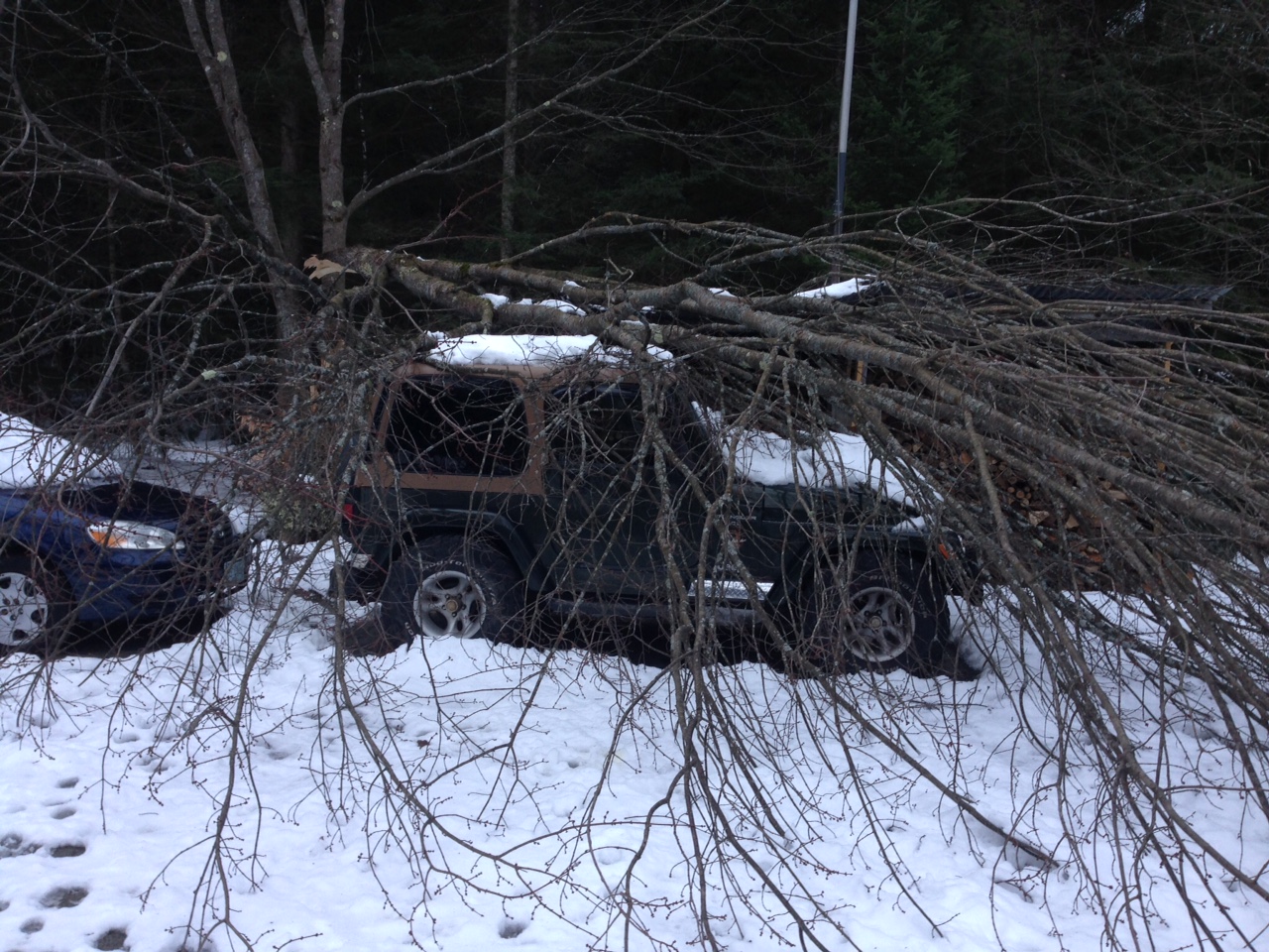 “The winter that wouldn’t quit” has damaged so many trees. You can’t drive anywhere without seeing the devastation.I lost several trees in my own yard as well (including one that landed on my jeep). Toad’s demise did not come from the limbs of the mighty maple, but from the snow and salt of 7 winters in New Hampshire. Sad, but true..no more Toad…
