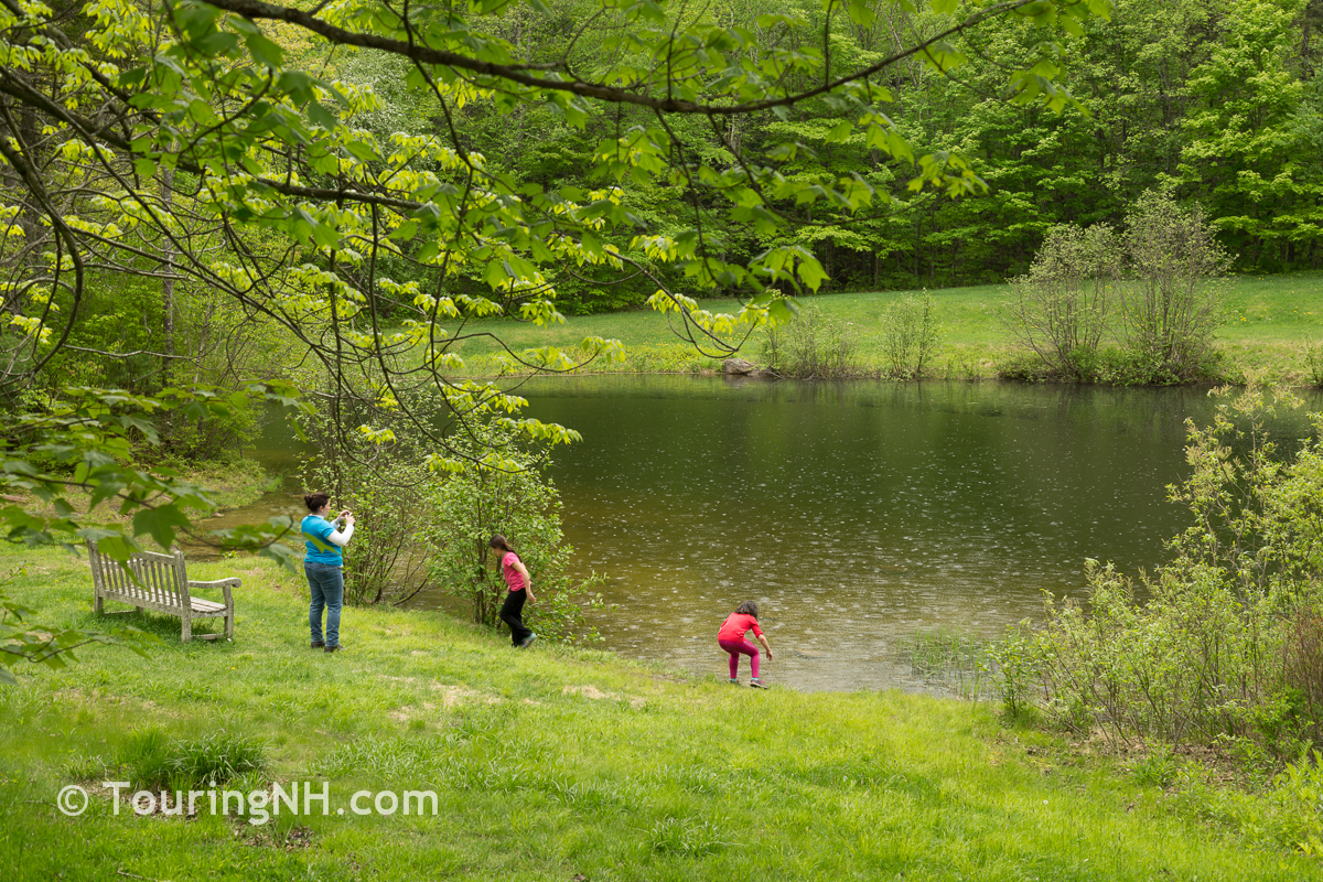 Before we were encouraged inside by the sign stating “Public are very Welcome”, we wandered around the immediate grounds. Despite the fact it was starting to drizzle, a family was checking out the pond. The girls giggling with each discovery…