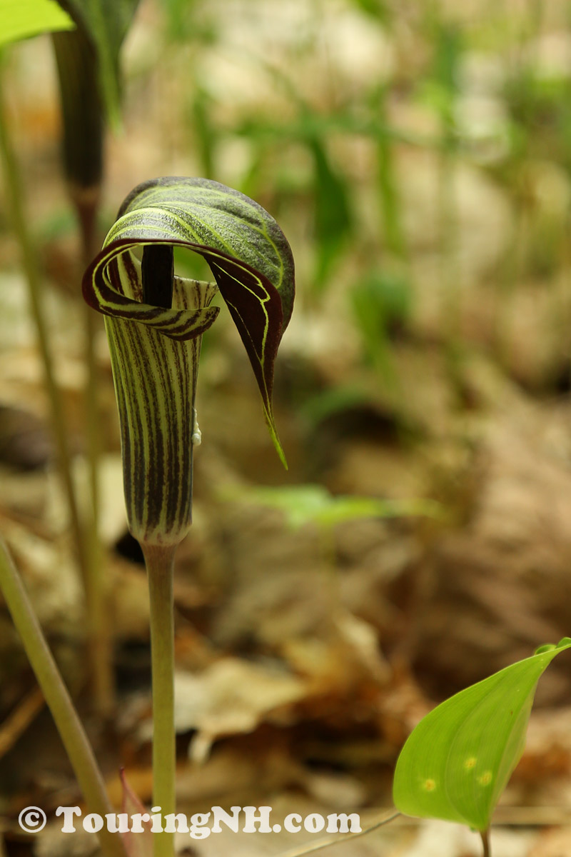 There are quite a few trails off of Sandwich Notch Road. I picked one at random and went for a walk. Near the edge of the marsh, I came across several Jack in the Pulpits. The sun really highlighted the colors…